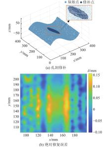 针对数据处理产生的点云模型孔洞,提出无序点云的多孔洞修补方法. 推导出不均匀数据点的密度公式得到邻域投影范围,使用角判别法以整体拟合平面为投影面进行边界识别. 定义边界形心,以形心、边界和边界邻域三者之间的位置关系提取孔洞边界. 在规则化与均匀化投影边界内以三角片法插值点,基于边界邻域拟合曲面还原孔洞特征,推导出参数方程进行点云孔洞填充,设计多维循环算法实现多孔洞自动修补. 利用CAD点云模型与激光雷达测量数据分别进行算法分析与实验验证. 结果表明,所提方法有效减少了以微切面为投影面时边界点的错误识别,实现了多个不同孔同时存在时无序点云模型的修补;在针对不同对象的实验中,所提方法的修复误差达到毫米级.