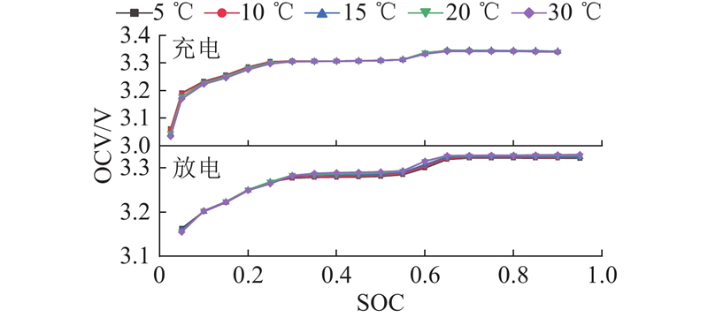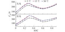为了引入电池表面原位膨胀力拓展电池荷电状态(SOC)估计的输入数据维度从而提高估计精度,开展磷酸铁锂电池在不同温度和电场下的机械特性与电化学特性研究,包括设计并搭建电池多物理场信号采集台架,开展不同温度下的开路电压(OCV)测试、混合功率脉冲测试(HPPC)、表面原位膨胀力测试,分析电池的机械与电化学特性及其在不同工况下的多物理场行为. 结果表明,电池表面原位膨胀力随着SOC增加先增大后减小再增大,较开路电压对SOC的灵敏度更高. 膨胀力曲线的极值点位置受温度的影响较小,随温度升高有微小延后;受电流的影响较大,随电流增大明显提前并逐渐消失. 电池内阻随温度升高而明显下降,开路电压曲线在不同温度下具有较高的一致性. 实验研究展示了膨胀力信号在电池SOC估计应用中的潜力,为基于膨胀力信号的电池SOC估计提供理论基础和数据支持.