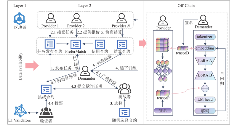 Abstract Utilizing idle computing resources distributed worldwide to train large language models provides a novel paradigm for supplying computing power while helping to reduce training costs. A blockchain-based large model fine-tuning compute-power sharing platform, CompuDEX, was proposed to address the challenges of privacy risks, malicious attacks and lack of trust associated with this method. The trustless and anonymous nature of blockchain technology was leveraged to create a transaction platform that eliminated the need for trusted intermediaries while protecting user privacy. The smart contracts and cryptographic tools were employed to encourage fair competition among compute power providers, further reducing training costs. A security scheme combined with a “Red Balloon” incentive mechanism was designed based on zero-knowledge proofs to identify and penalize the malicious behaviors of compute power providers. The structure of the fine-tuning method LoRA was split to ensure data privacy during the training process without introducing additional computational overhead. Experimental results showed that during the forward propagation phase of fine-tuning, the computational cost was only 8% to 14% of that charged by major domestic cloud service providers. By increasing the number of parallel nodes, the execution time was significantly reduced from 175% of the local training time to 20% or even lower.