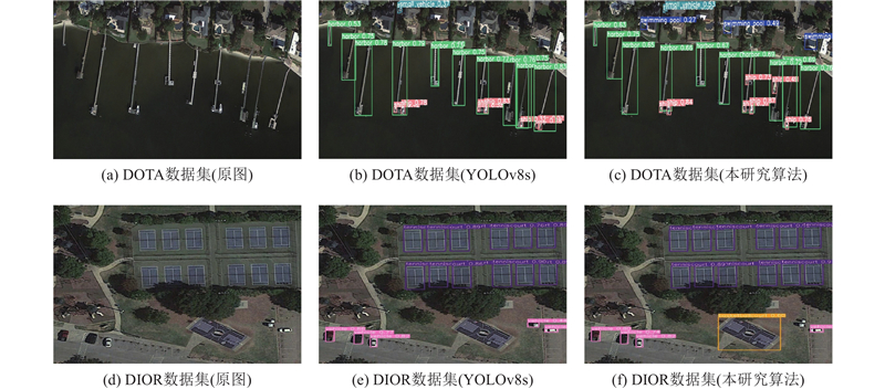 Abstract An aerial small target detection algorithm that balanced performance and resource consumption was proposed to address the issues of low detection accuracy and large model parameter size in small target detection of aerial images. On the basis of YOLOv8s, an adaptive detail-enhanced module (ADEM) was proposed by reducing the channel dimension and enhancing the focus on the high-frequency features to capture the fine-grained features of small targets while discarding the redundant information. A feature fusion network was optimized based on the PAN-FPN architecture to enhance the attention on shallow features. Multi-scale convolutional kernels were introduced to enhance the focus on the target contextual information, thereby adapting to the small object detection scenario. A parameter-adjustable Nin-IoU was constructed to overcome the limitations of traditional IoU in flexibility and generalization, and this adjustment achieved by introducing adjustable parameters allowed the Nin-IoU to be tailored to different detection tasks. A lightweight detection head was proposed to enhance the integration of multi-scale feature information while reducing redundant information transmission. Experimental results on the VisDrone2019 dataset indicated that the proposed algorithm achieved an mAP0.5 of 50.3% with only 8.08×106 parameters, representing a 27.4% reduction in parameters and an improvement of 11.5 percentage points in accuracy compared to the YOLOv8s benchmark algorithm. Experimental results on the DOTA and DIOR datasets further demonstrated the strong generalization capabilities of the proposed algorithm.