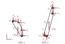 Fig.6 Force analysis of component 1 and component 2 in bionic mechanism
