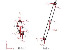 Fig.7 Force analysis of component 3 and component 4 in bionic mechanism