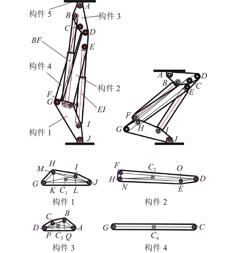 Fig.2 Schematic diagram of bionic mechanism and illustration of component hinge points