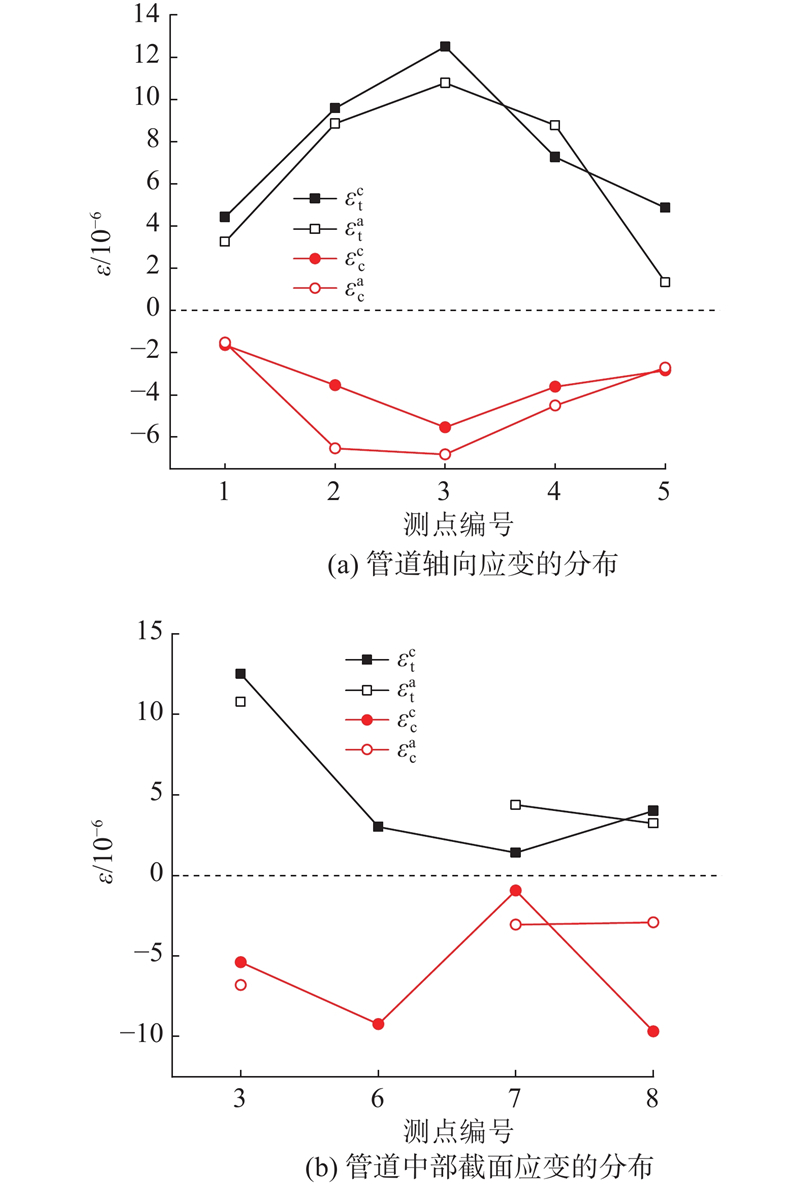 为了合理评价山区受崩塌落石威胁的油气管线工程安全性,分析管道在落石冲击作用下的动力响应特性. 通过开展埋地油气管道的落石冲击足尺模型试验,结合试验全过程的动态应变测试技术,分析埋地管道在不同的管道-落石偏移距离(管-石偏距)下的动力响应特征,提出基于管-石安全临界偏距的埋地油气管道安全评价方法. 结果表明,在正上方落石冲击作用下,管道截面主要呈现顶部受拉、侧面受压的变形模式. 当管-石偏距从0 m增加至2 m时,管道顶部环向峰值应变从12.5 × 10?6迅速降低至3 × 10?6以下,整体呈现出随管-石偏距的增加而衰减且衰减速率不断减小的基本规律. 建立描述两者关系的幂律模型表达式,该幂律关系与足尺模型试验结果和其他文献中的室内试验结果吻合良好. 根据管道屈服应变,提出基于管-石安全临界偏距的埋地油气管道安全评价方法.