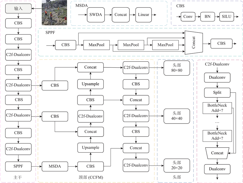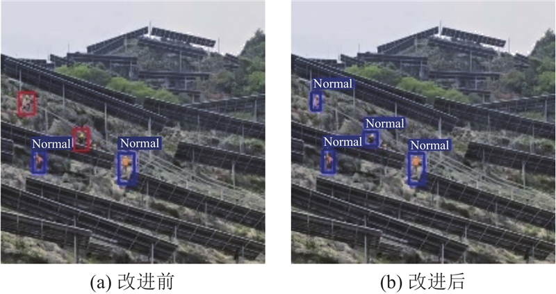 针对光伏电站建设中背景复杂、人体跌倒检测困难及现场部署受限的问题,提出基于移动端的CMD-YOLO检测方法. 该方法以YOLOv8为基线,使用改进的双分支卷积融合模块(C2f-Dualconv)替换传统C2f模块,以提高特征提取和计算效率. 采用轻量化跨尺度特征融合模块(CCFM)替换原颈部网络,在主干与颈部间引入多尺度空洞注意力机制(MSDA). 实验部署在Orange Pi5 Pro RK3588平台上,结果显示平均精度达到88.6%,参数量和运算量分别降低了31.3%和22.2%,单张检测时间为0.029 7 s,平均功耗为2.264 7 W. CMD-YOLO以低参数量、低功耗和高实时性的优势,有效应对光伏电站跌倒检测中的关键挑战,并能在资源受限的现场稳定运行,为移动端的实时检测提供可靠的支持.