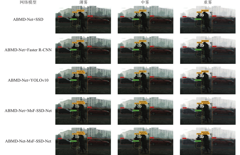 Abstract Two key technical improvements were proposed to address the issue of decreased target detection accuracy caused by target occlusion and fog interference in intelligent autonomous driving scenarios. Firstly, an improved detection method was proposed for the problem of target occlusion. A lightweight MobileNetV3_small with an integrated enhanced attention mechanism was used as the SSD backbone feature extraction network. The detection accuracy in occlusion scenarios was enhanced by combining a multi-scale feature fusion mechanism and an adaptive hyperparameter Soft-NMS algorithm. The confidence loss function was reconstructed by improving the adaptive Focal Loss to alleviate the imbalance between positive and negative samples and the sensitivity to noisy labels. Secondly, an improved lightweight AOD-Net defogging method was proposed to address the problem of target blurriness in foggy images. The image contrast was effectively enhanced and texture details were improved, by constructing a multi-scale feature extraction network based on depthwise separable convolution, optimizing the cross-layer connection structure, and introducing a boundary enhancement module. Finally, an end-to-end collaborative optimization of the defogging network and the detection network was achieved through a joint loss function, providing a more reliable optimization path for the detection task of occluded targets in foggy images. Experimental results showed that the joint optimization model improved the target detection performance in foggy occlusion scenarios, achieving efficient detection with an accuracy of 93.85% and a detection speed of 47.61 frames per second, and demonstrating excellent model robustness.