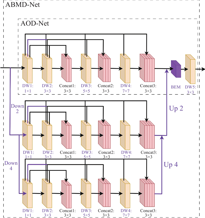 LI B, PENG X, WANG Z, et al. AOD-net: all-in-one dehazing network [C]// Proceedings of the IEEE International Conference on Computer Vision. Venice: IEEE, 2017: 4780–4788.