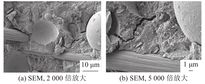 图 7 纤维组分电磁吸波集料混凝土破坏断面的微观结构