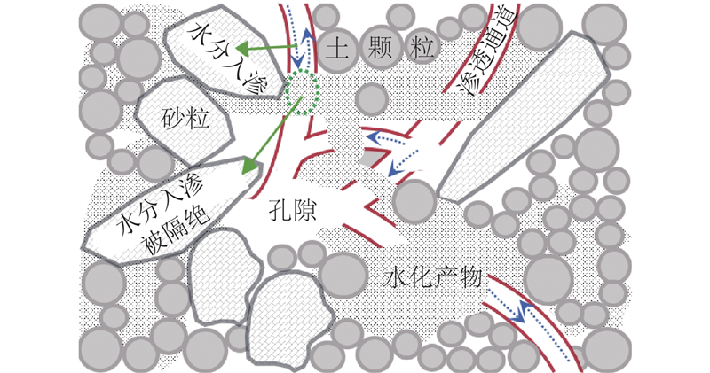 流态固化土早期应用可追溯至1964年,美国农垦局在得克萨斯州加拿大河引水工程中使用流态固化土作为管道垫层材料[4]. 日本关于流态固化土的研究始于20世纪80年代,针对管线回填导致的城市路面塌陷问题提出的流动化处理工法具有良好回填效果[8]. 中国相关研究起步较晚;2000年,顾欢达等[9]采用流塑态淤泥土制备的流态固化土具有良好流动度及自硬性,可用于地下狭窄空洞回填. 淤泥流态固化改性可使固废资源化且耗时短、成本低,逐渐被应用于堤防工程及道路工程[10]. 随着地铁及城市管网建设,盾构渣土、弃方的流态固化改性逐步被重视. 2017年北京城市副中心综合管廊基槽用粉黏土弃方制备流态固化土进行规模化回填(填筑量约2.0×105 m3),随后在成都、深圳与雄安等地得到推广[11],相关技术标准陆续发布[7,12]. 流态固化土最基本的技术参数是强度,并依据填筑工作面能否辅助振捣确定流态固化土的流动度[7]. 朱瑜星等[13-14]通过试验发现水固比能控制粉黏土及粉砂土(渣土)流态固化改性后的流动度,强度与灰土比正相关. 流态固化土的特性参数(如泌水率)须符合的工程标准[7],确保土体输送时的匀质性及填筑后稳定性;处于暴露环境中的流态固化土须关注的特性是干湿或冻融循环下的耐久性[12,15].