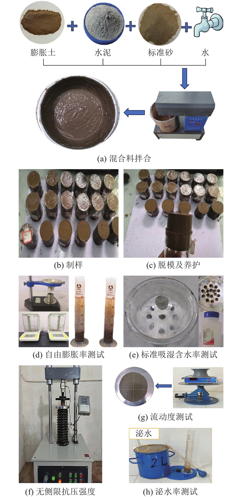 流态固化土制备原材料包括膨胀土弃方、水泥、水和标准砂.