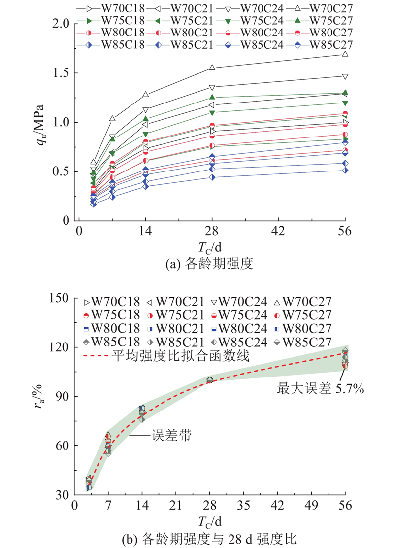 | 龄期对无侧限抗压强度的影响 | 10 | 18, 21, 24, 27 | 70, 75, 80, 85 | 3, 7, 14, 28, 56 |