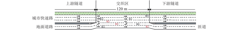在城市道路交通系统中,交织区是城市快速路网的重要组成部分,集中性换道行为使交织区成为限制快速路网安全和效率提升的主要瓶颈. 交织区交通冲突根本上是车辆对交织区有限时空资源的竞争,交织交通类型越多,交织区的复杂度越高,因此快速路上汇入和汇出交通混行的互通交织区[2] 在交通管理与控制上面临更大挑战. 城市快速路互通交织区内大量、复杂的交织行为往往导致车辆缓行甚至交通拥堵,且状况易蔓延至上游路段,导致严重后果. 对城市快速路互通交织区的换道行为特征进行深入研究,有利于准确掌握城市快速路互通交织区交通流的变化规律,也有利于评估交织区状态以制定有效的管理方案. 本研究聚焦城市快速路互通交织区换道行为的换道持续距离特征,分析影响换道车辆进行换道持续距离行为决策的影响因素,构建换道持续距离行为决策模型,为未来换道过程的深度影响评价奠定基础.