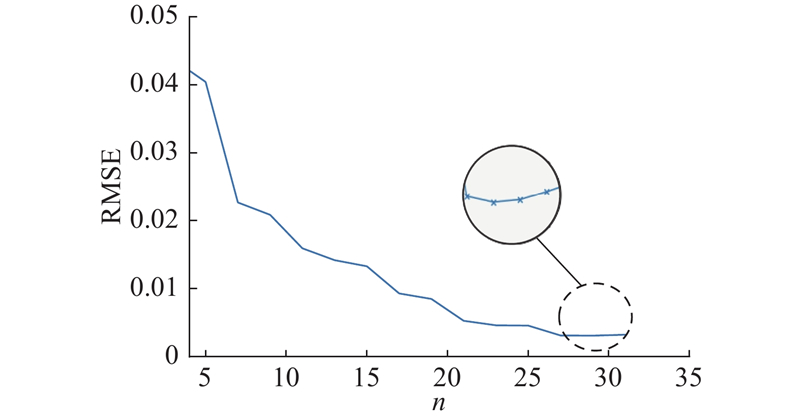 多次仿真实验得到不同多项式次数的温度场拟合结果对数均方根误差情况如表1所示. 理论上,多项式次数越大,误差越小,但由表可知,在多项式次数较高时,函数发生过拟合. 当多项式次数