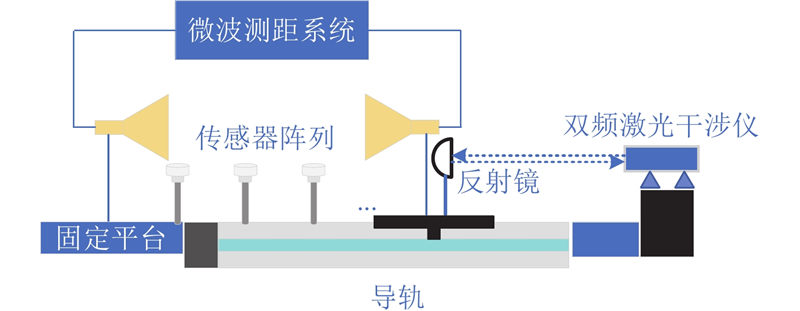 设计测距实验,室内测试整体实验平台如图18所示,由微波测距系统、精密可移动导轨及高精度双频激光测距仪组成. 平台上布设高精度传感器,利用纳米级双频激光干涉仪对大气折射修正效果进行检验. 真实距离