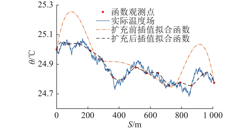 (2)径向基插值融合多项式拟合的物理场混合代理模型有效避免了单纯多项式拟合时的龙格现象. 蒙特卡洛仿真结果表明,混合代理模型的正态分布标准差更小,相较传统的多点法,改进方法的标准差降低了73.1%,证明本研究模型所得环境参数数据的稳定性和可靠性更高.