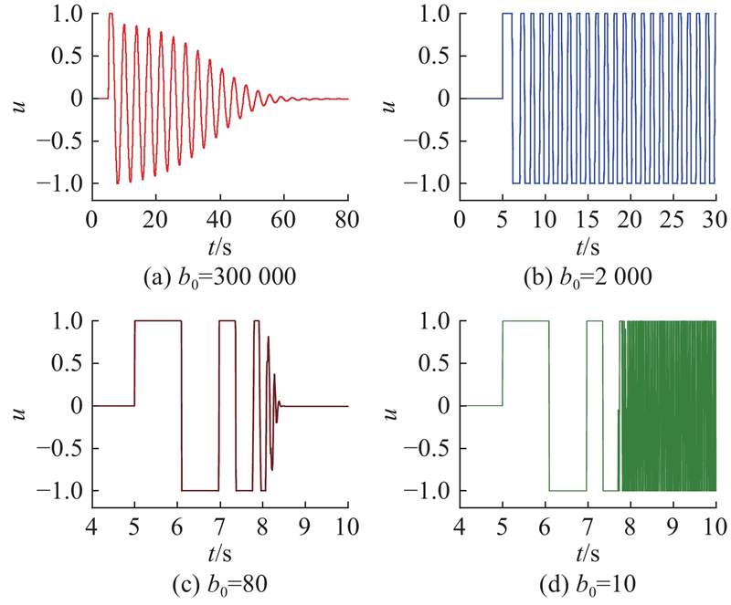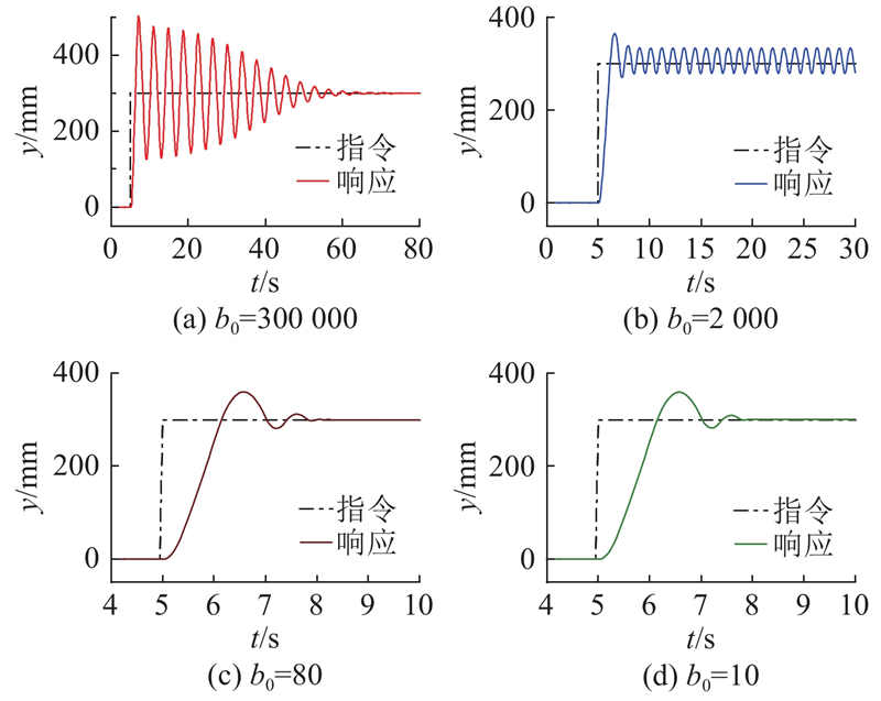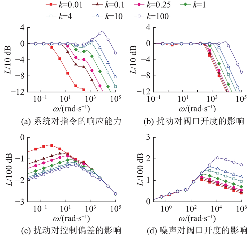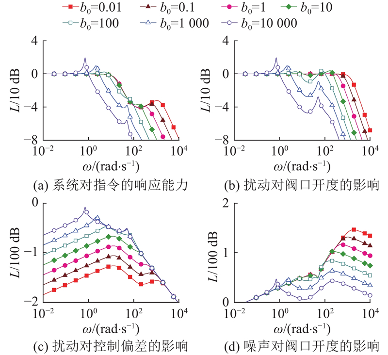 电液伺服系统对指令的响应能力、抗扰特性和抗噪特性是衡量LADRC性能的重要指标,研究LADRC各参数对闭环系统性能的影响规律能够为控制器参数设计提供有效指导. 单独调节