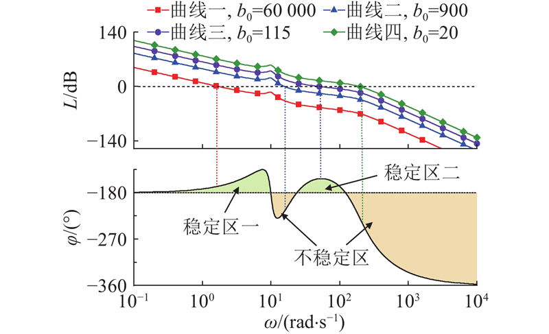 采用一阶LADRC控制器的电液伺服系统开环传递的伯德图如图14所示. 调节一阶LADRC的名义控制增益