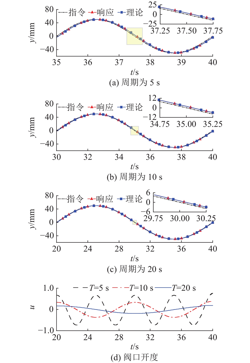 图 19 不同指令信号周期条件下的正弦响应与阀口开度仿真