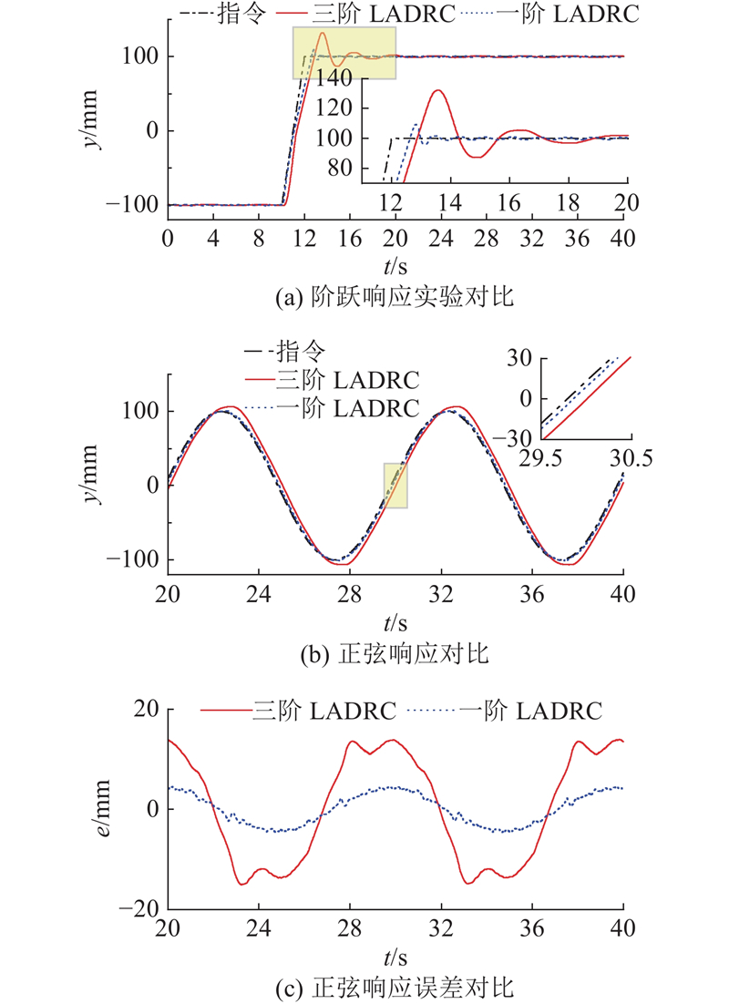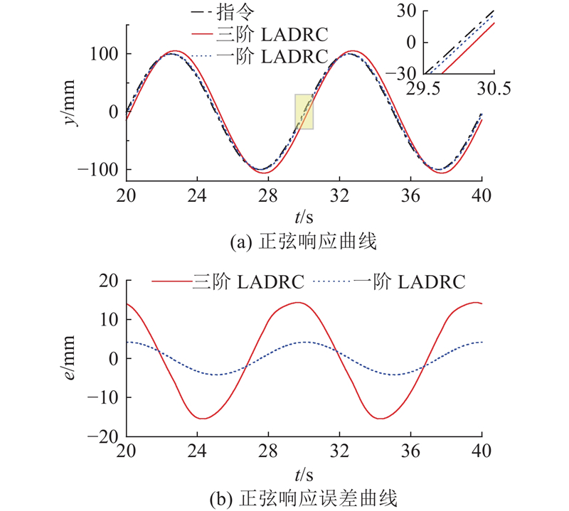 为了对比验证三阶及一阶LADRC对大液压固有频率系统的控制性能,设计