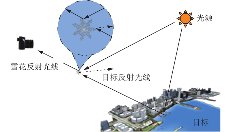 自动驾驶技术面临雪天视觉感知的挑战,有效的样本数据是测试视觉感知性能的关键. 雨雾天气里空气中的水雾颗粒折射或者反射导致场景信息的损失[1];在雪天场景中,雪花会直接阻挡光线传播,积雪覆盖还可能遮挡视野.