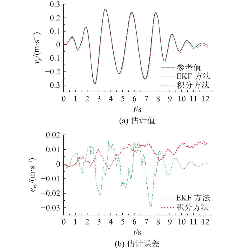 图 4 扩展卡尔曼滤波方法与积分方法横向速度估计效果对比