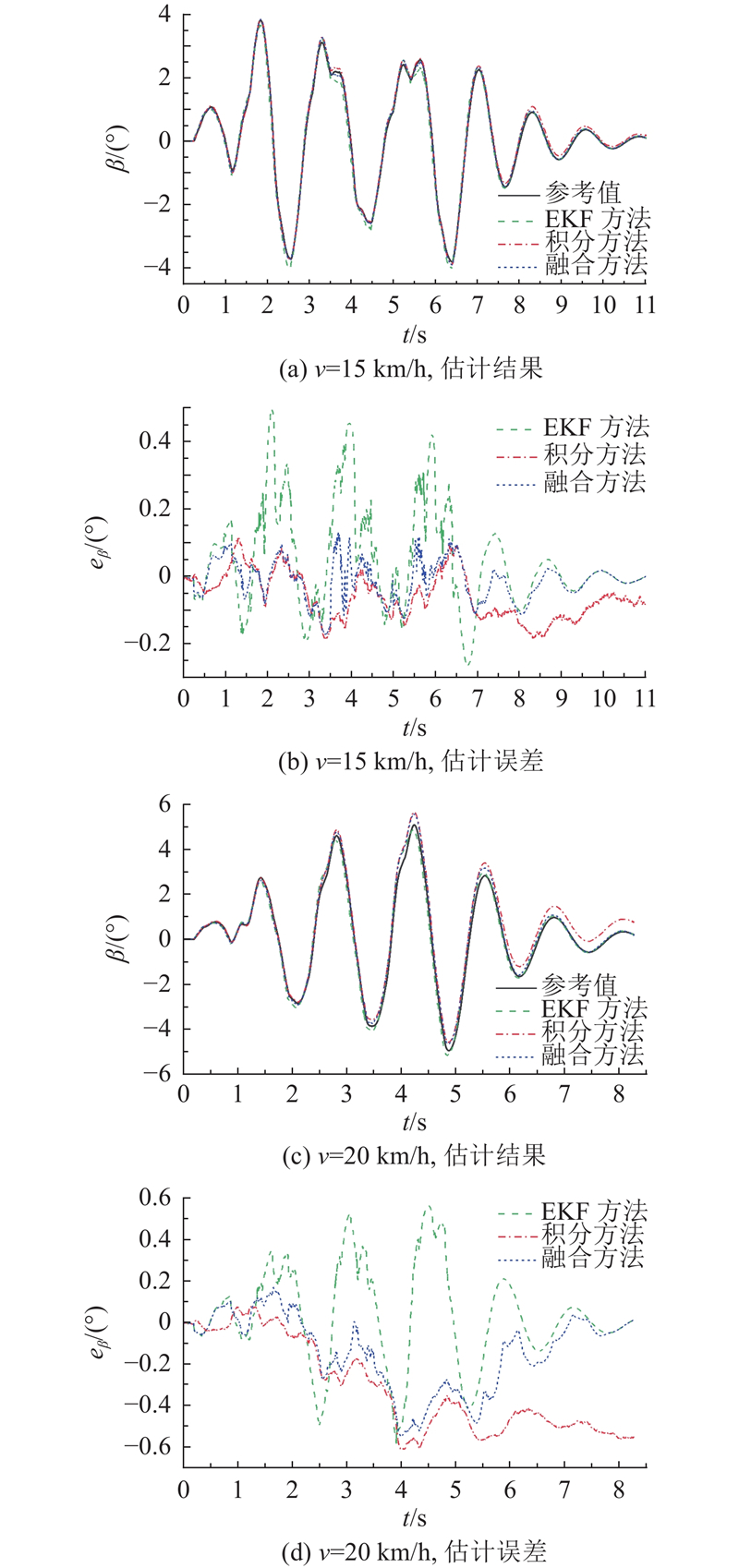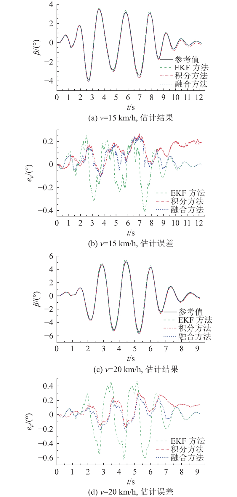 图 7 扭曲路车辆质心侧偏角估计结果(Hs=150 mm)
