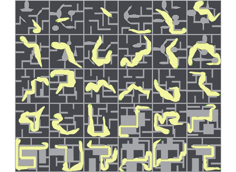 为了进一步验证模型在实际场景中的应用效果,构建由60张训练集中未出现过的地图组成的测试集. 这些地图覆盖从简单到复杂的多种场景(包括室内常见布局及狭长走廊),起终点位置均为随机生成. 如图12所示为OPAPN模型在此测试集上的预测结果. 可以看出,所提模型在多样化的地图上具有稳健的表现.