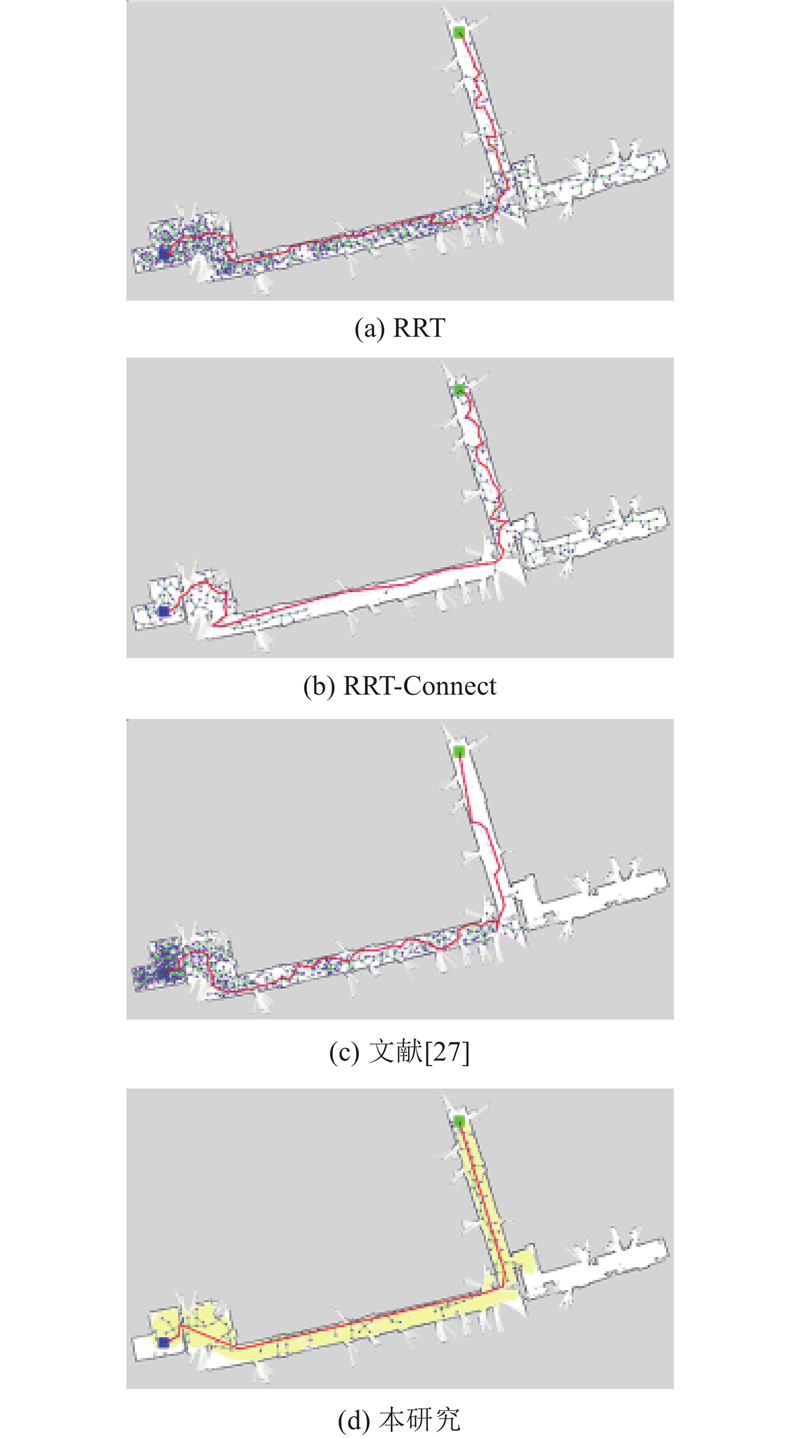 本研究所提改进算法的特点是启发式采样、双树采样和路径平滑.
