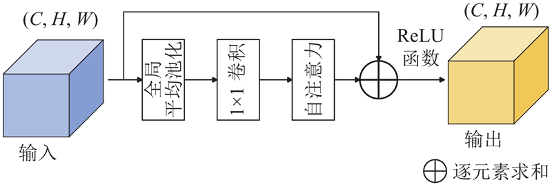 如图2所示,为了增强对全局特征信息的捕获,GFE将全局平均池化、1×1卷积和自注意力机制[20]结合. 其中