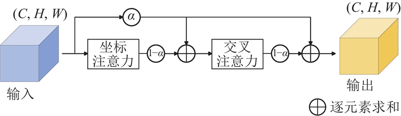 在处理语义分割的任务时,并非所有由编码器提取的特征都对最终分割结果至关重要. 注意力机制[20]是动态权重分配策略,能够使模型更加关注与特定任务最相关的输入数据部分,从而提高处理复杂信息的效率和准确性. 本研究将注意力机制整合进特征聚合模块,使网络能够有选择性地聚焦关键特征,同时忽略不相关的信息,提升整体性能. 与传统深度学习语义分割不同,预测最优路径区域的任务须准确识别并连通起点和终点间的可行路径,而非简单基于像素级分割对象. 为了增强模型对全局地图信息的识别与理解能力,设计融合坐标注意力[21](coordinate attention, CA)和交叉注意力[22](criss-cross attention, CCA)的注意力模块.