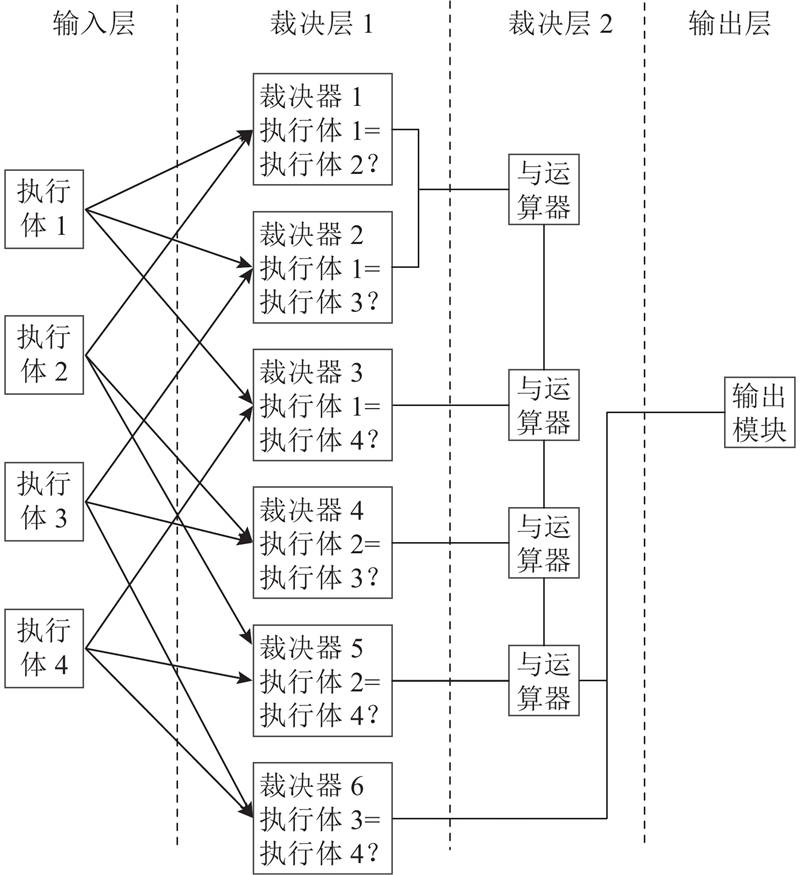 图 11 高鲁棒信息系统的拟态裁决架构(四冗余、故障容许度为1的信息系统)