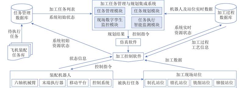 针对以上问题,需要建立一套拥有装配现场加工任务知识库的任务管理与规划集成系统. 系统根据标准化的知识库,自动完成飞机装配过程中各种不同加工任务的任务规划和指令生成[18],且能够通过感知加工系统状态来进行实时重规划.