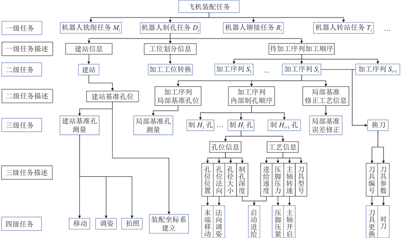 1)一级任务:包括制孔、镗孔、铆接、铣削等加工任务以及机器人转站任务等.