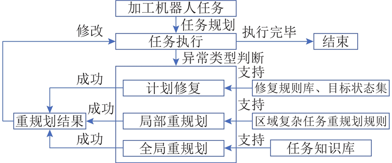 原子任务重规划问题通常由任务执行智能监测模块的指令或现场操作人员的调整引发,针对2种情况,分别构建基于工艺知识库和目标状态集的重规划方法,如图8所示.