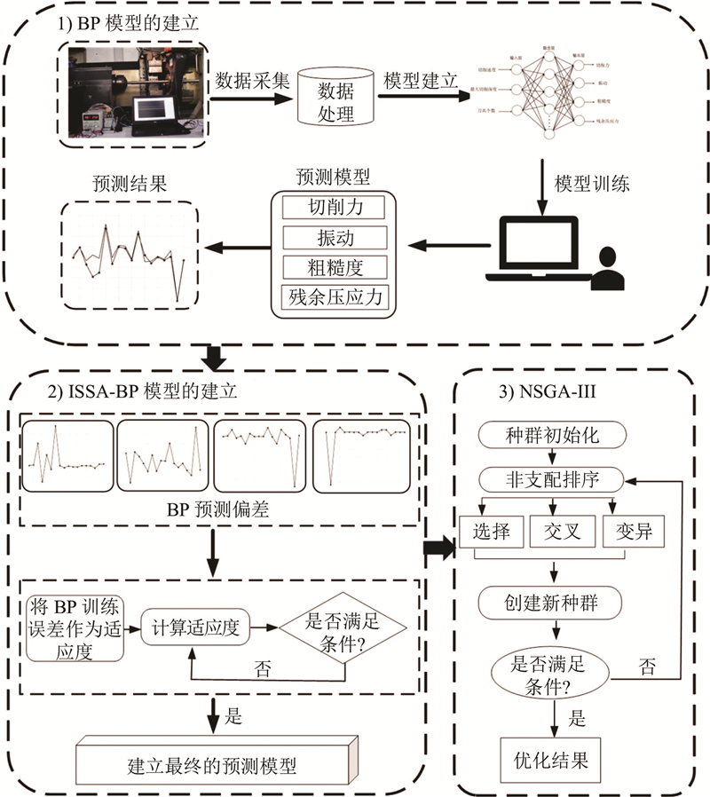 后续研究将从以下方面展开,采用正交实验设计,增加实验组数与参数的组合范围,考察各参数间的交互作用对预测模型的影响. 对现有的优化算法进行改进,提升预测精度和多目标优化的效率. 此外,引入其他多种加工场景的案例研究,得到更具普适性与实用性的优化方案,完成对最优解的有效验证.