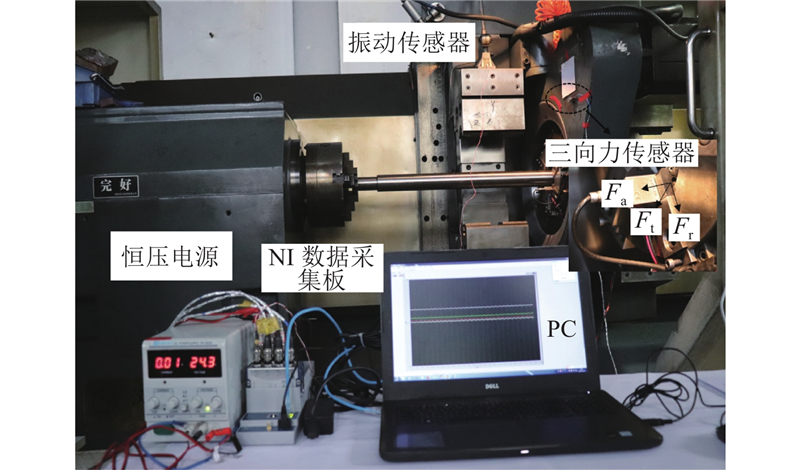 将切削速度Vt、最大切削深度Ma、刀具个数N作为丝杠加工质量的主要影响因素. 切削力(切向Ft、径向Fr、轴向Fa)由压电传感器Kistler 9602A测量,经NI cDAQ-9189采集箱与NI-