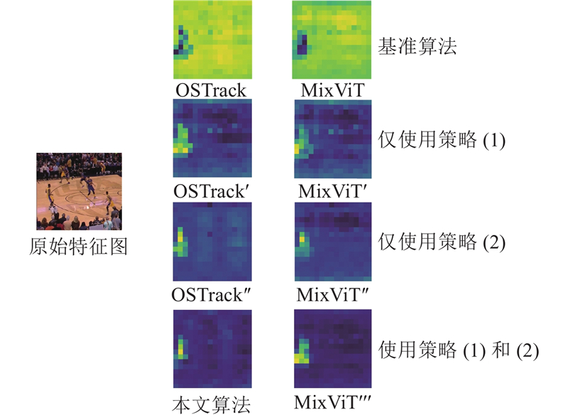 ... 算法OSTrack[26 ] 直接融合模板和搜索特征,省略了二者之间的关系建模,并采取静态模板更新策略,有效简化了特征学习和计算过程,提高了跟踪效率和推理速度.然而,在复杂场景中,宽泛性特征融合和静态模板更新策略容易将背景干扰信息引入目标特征,导致关键特征的丢失,且丢失特征难以恢复. ...