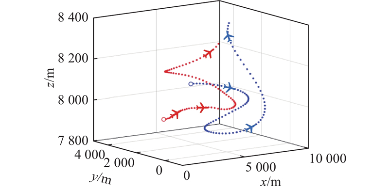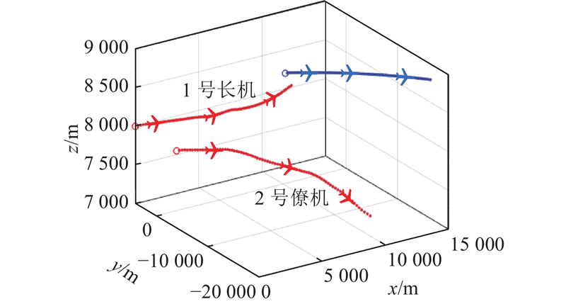 为了验证三大机制创新的有效性和必要性,构建2对1的无人机对抗场景(见图10). 假设在执行某次追击任务时,我方派出1号长机负责攻击敌机、2号僚机进行掩护支援.