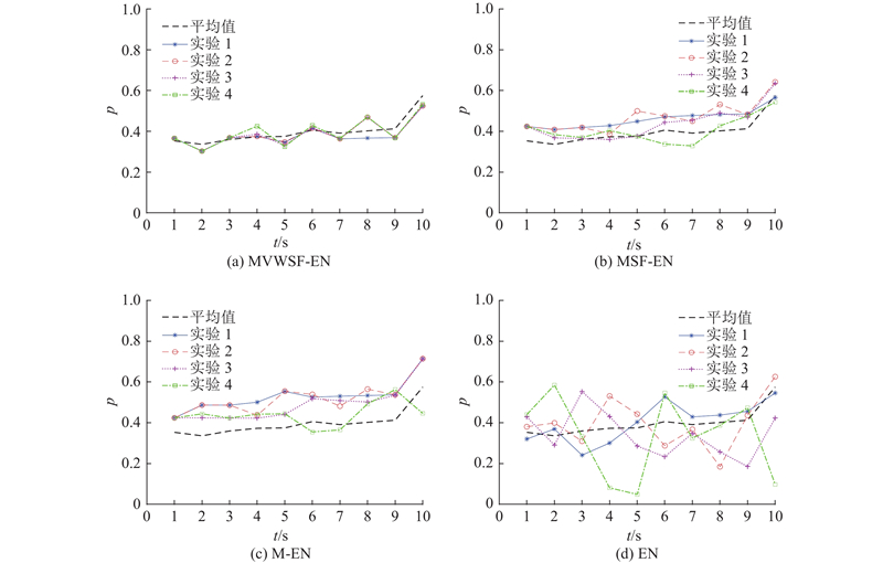 从数据分析来看,信息不完备程度的加剧显著影响推理准确性. EN因缺乏对不完备信息的处理机制,平均相对误差从0.286 4激增至0.585 2,出现严重失真. 虽然TSF-EN通过信度替换和权重调整策略优化,但处理手段单一,导致平均相对误差从0.166攀升至0.376 9. DE-EN虽然基于Deng 熵理念处理不完备信息,但因缺乏通用框架与差异化校正标准,平均相对误差从0.140 7上升到0.284 1,结果不理想. 相比之下,MVWSF-EN在各实验中的平均相对误差始终约为0.05,展现出卓越的信息不完备性处理能力.
