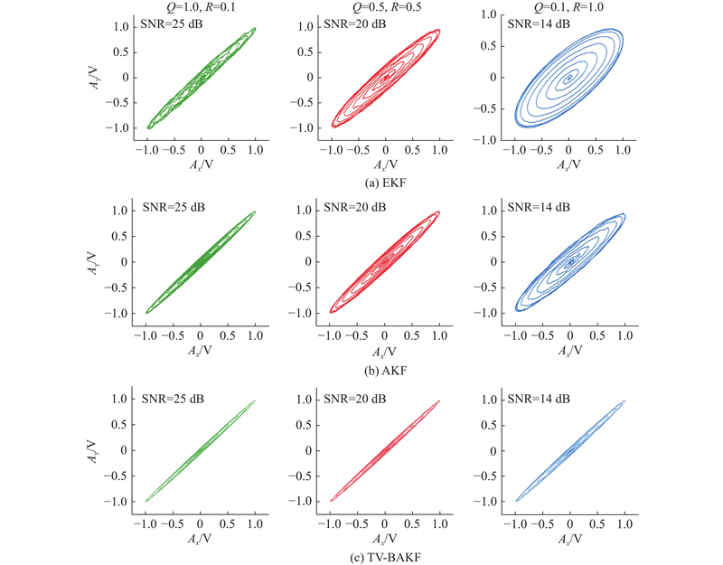Fig.9 Lissajous diagrams of different Kalman filter methods with various Q and R combination