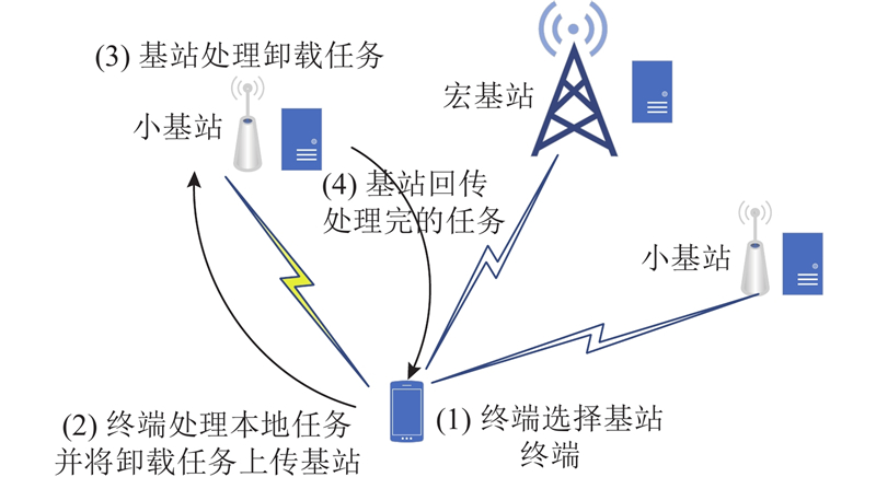 目前已有许多策略和算法用来解决边缘计算网络中的任务卸载问题[10]. 从通信时延和计算时延两方面出发,通过调度终端和基站的资源来降低时延或减少能耗.