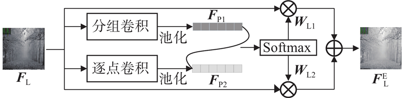 针对低频特征结构信息丰富的特点,设计如图6所示的低频特征增强模块,在不增加额外计算开销的情况下,提高网络对雾气空间分布的理解.