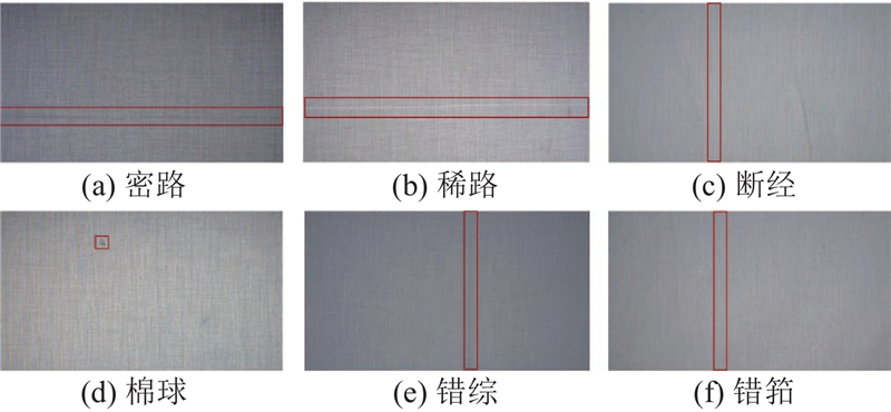 上述模型取得了一定的成功,但没有较好地平衡模型的精度、速度、模型参数和计算量,另外,有些模型在面对大纵横比及成像外观相似缺陷的检测中出现了问题. 因此,织物缺陷检测依旧存在如下的一些挑战. 1)不同原因会造成不同形态及尺寸的织物缺陷[19],如污染导致大面积缺陷,断经、断纬形成具有极端纵横比的缺陷,破洞、纬缩形成小或微小缺陷. 现有检测模型无法完全有效检出并正确分类. 2)网络频繁地提取与融合特征导致特征细节信息丢失,容易出现相似缺陷错检、背景误检问题. 3)边缘计算机低延迟和小体积的特点能提高系统响应速度,并减少多台设备使用时的占地面积. 但边缘计算机存在算力受限问题,当模型选择降低参数和计算量以实现部署时,却无法保证模型精度.