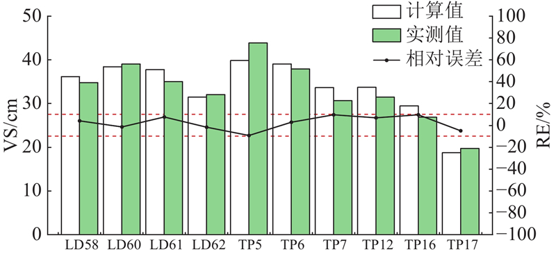 为了验证反演分析的准确性,将反演所得参数与通过同类工程类比得到的不敏感参数值代入有限元程序中计算,得到所选10个测点的流变变形计算值. 随后,将这些计算值与实测数据(从统计模型中解耦分离出的时效分量)进行对比分析,结果图12所示. 可以看出,所有测点的计算值与实测值的相对误差基本小于10%,一半测点相对误差小于5%. 这表明本研究反演得到的流变模型参数合理,反演精度满足土石坝数值分析的要求.