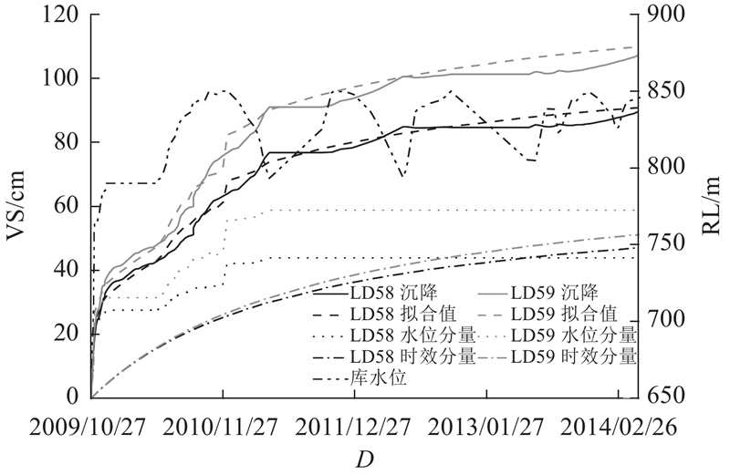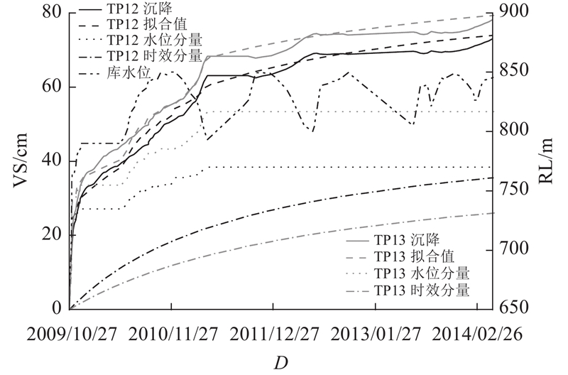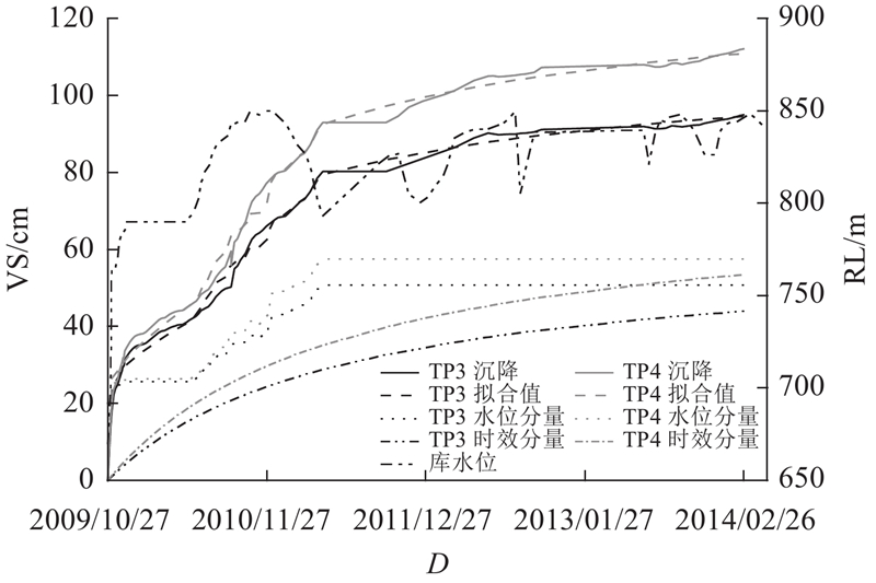 3) 在最后一个监测日(2014年2月16日),水压分量约占总沉降量的55%,时效分量约占总沉降量的45%,解耦变形结果符合大坝沉降变形规律,说明采用本研究所用方法建立的沉降统计模型是较为合理且可靠的.