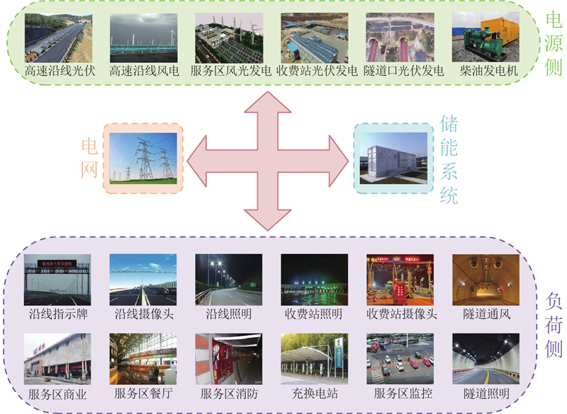 高速公路自洽能源系统不仅降低了供电成本,还提高了供电的可靠性和环保性,有助于高速公路沿线区域的绿色低碳发展. 高速公路自洽能源系统有“源-网-储-荷”4大组成部分,如图1所示.