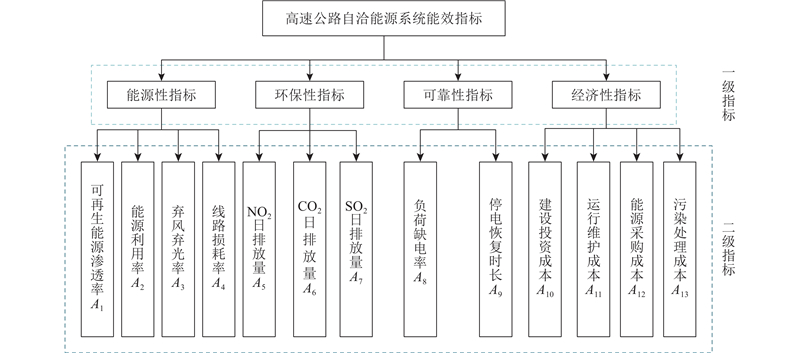 Fig.2 Efficiency evaluation index tree of self-consistent energy system for highways