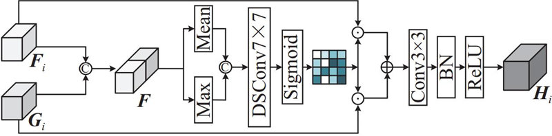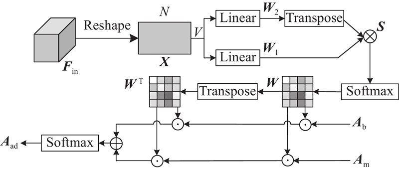 ... 为了有效融合姿态特征${{\boldsymbol{F}}_{{\text{gcn}}}}$ 和外观特征${{\boldsymbol{F}}_{\text{s}}}$ ,采用双线性池化方法[31 ] 融合特征,充分挖掘2种特征的联合表示. 为了确保特征维度对齐,首先采用双线性插值法将姿态特征${{\boldsymbol{F}}_{{\text{gcn}}}}$ 调整至与外观特征${{\boldsymbol{F}}_{\text{s}}}$ 的空间分辨率一致,得到$ {\boldsymbol{F}}'_{{\text{gcn}}} \in {{\mathbf{R}}^{H \times W \times V}} $ . 随后对调整后的姿态特征与外观特征进行逐元素外积运算,获得联合特征表示: ...