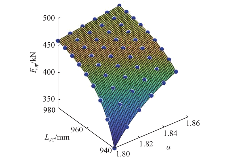 图 10 机构支护力Fsup关于参数LJG与α的响应面