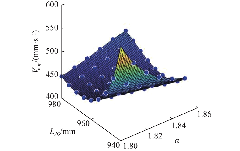 图 11 冲击速度Vimp关于参数LJG与α的响应面